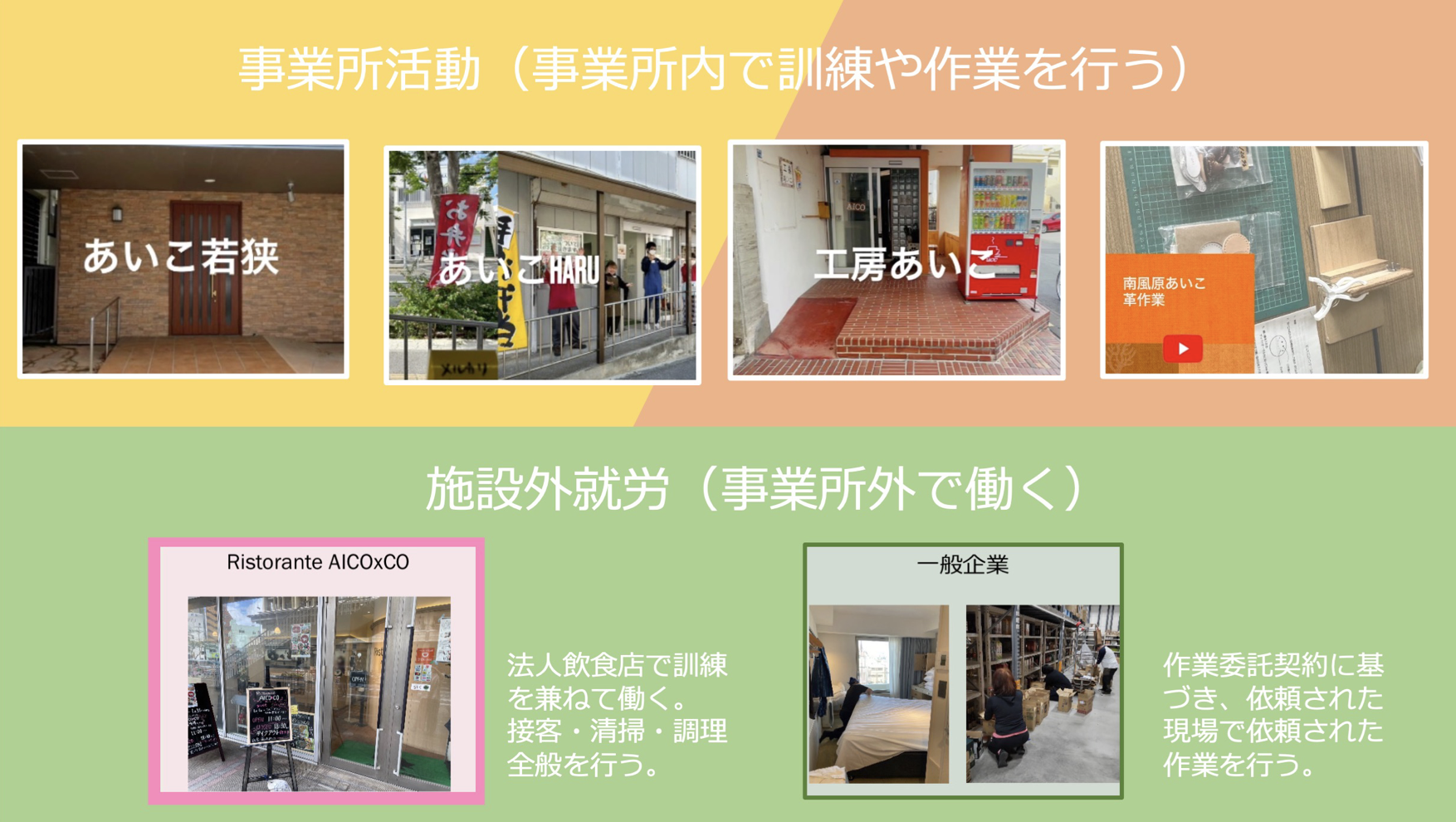 あいこには実態に合わせて働く、色々な施設内就労の形があります。